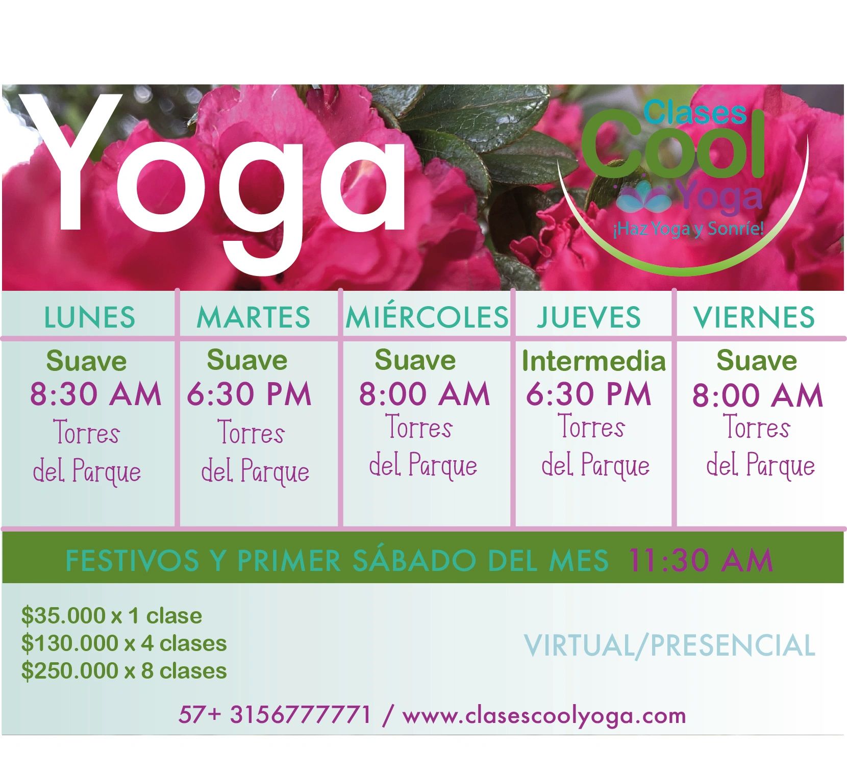 SESIONES DE YOGA SUAVE. SESIONES CORTAS DE RESPIRACIÓN CONSCIENTE PARA EL MANEJO DE LA ANSIEDAD Y EL ESTRÉS . SESIONES DE YOGA INTERMEDIO (REALIZAR POSTURAS MÁS EXIGENTES) . YOGA PRENATAL . YOGA PARA NIÑOS . YOGA PARA ADOLESCENTES . YOGA EN LA OFICINA .